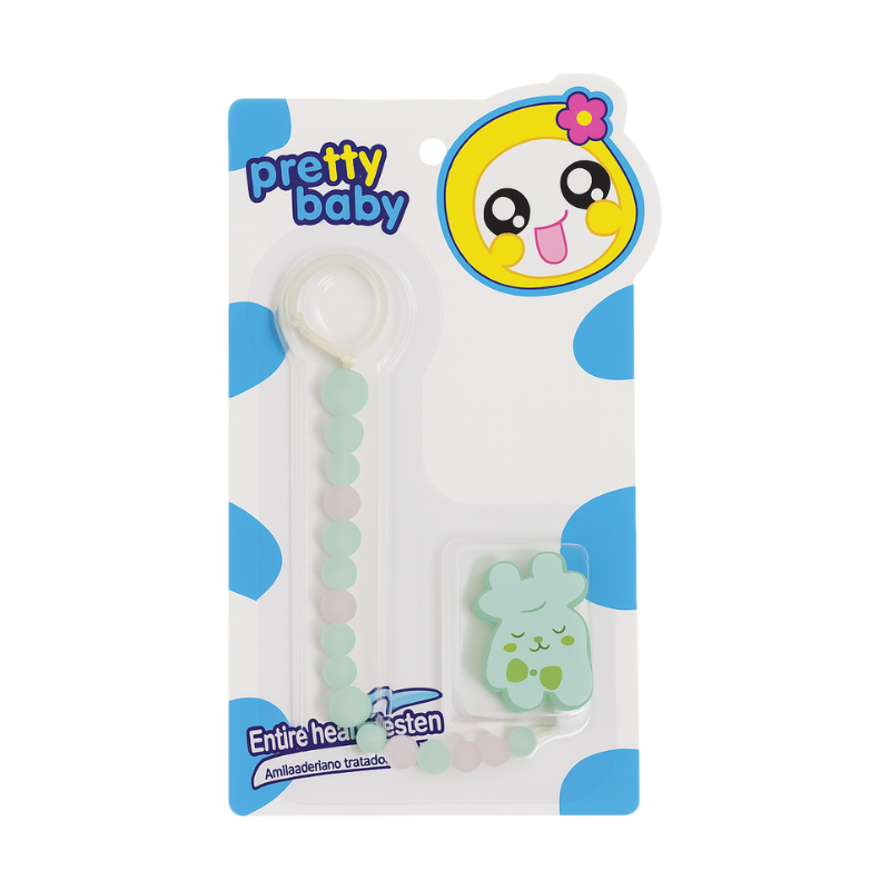 - Uso: Para sujetar chupetes, mordederas u otros accesorios