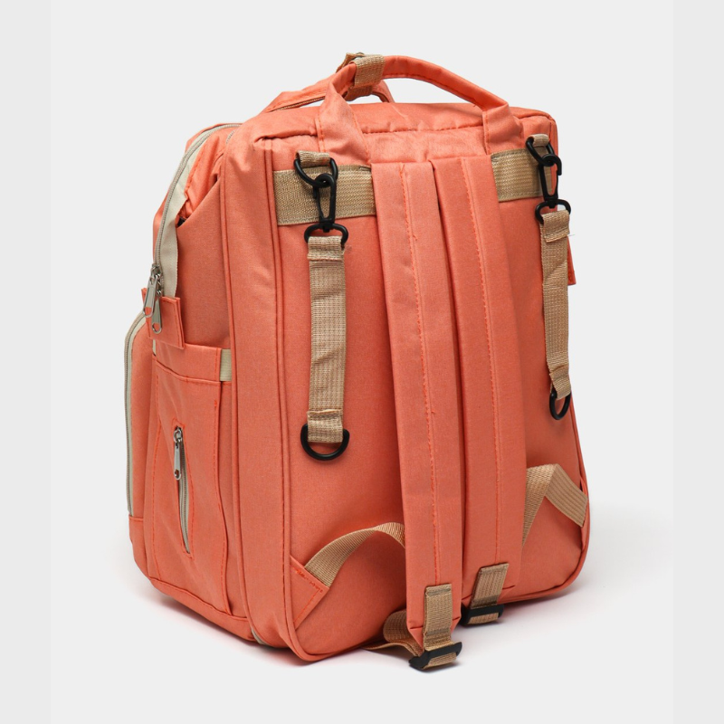 Práctica y moderna mochila para mamá o papá, ideal para salidas con el bebé. Su diseño convertible en cuna proporciona un espacio cómodo y seguro para cambiar al bebé o permitirle descansar en cualquier lugar.