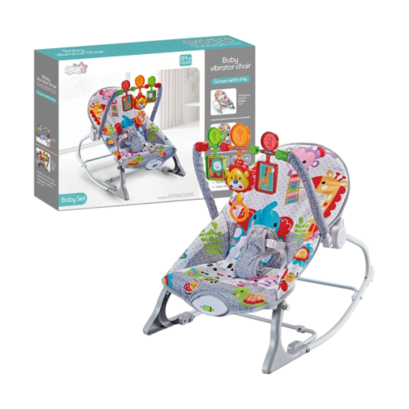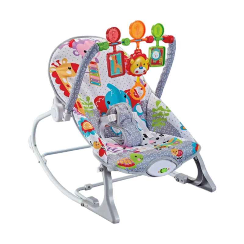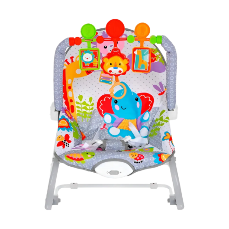 Esta divertida silla mecedora es el lugar ideal para que tu bebé descanse, juegue y se relaje con total seguridad. Gracias a su estructura resistente, vibración relajante y barra de juguetes interactivos, estimula los sentidos y promueve el desarrollo motor desde los primeros meses. Su diseño colorido con estampados de animalitos convierte cada momento en una experiencia visual estimulante, mientras su asiento acolchado brinda comodidad durante horas.