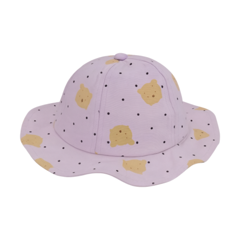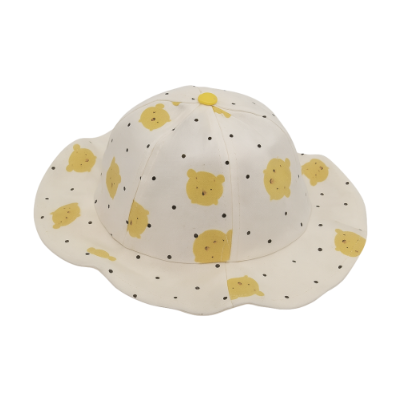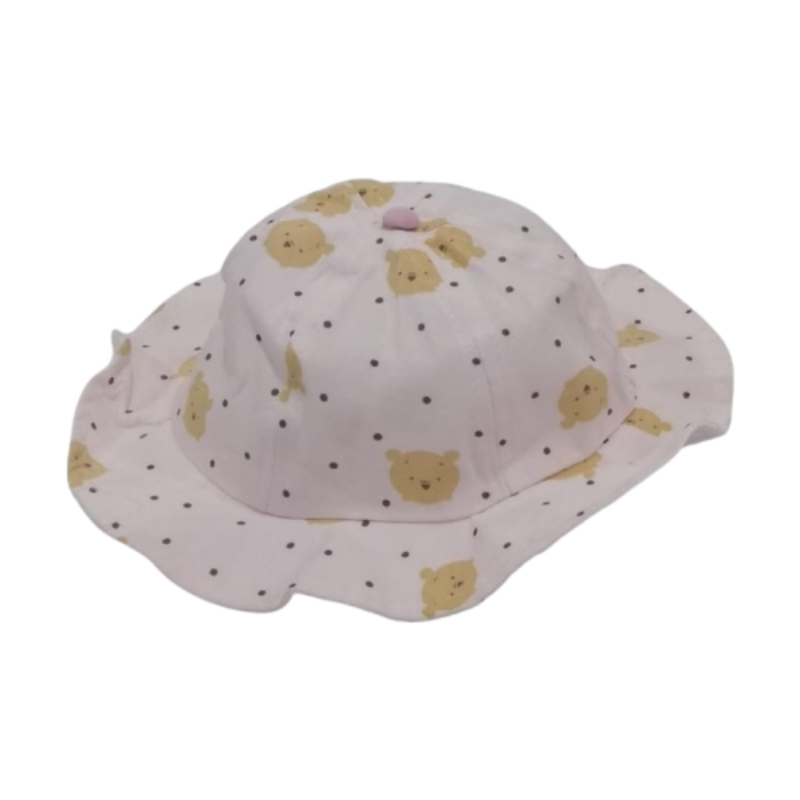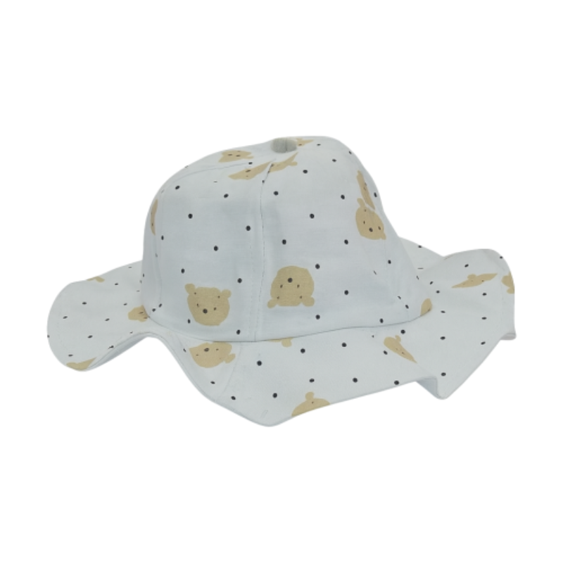 Este tierno sombrero tipo pava es el complemento ideal para proteger del sol a los más pequeños con un toque adorable. Su diseño suave y ligero, con estampado de caritas de osito y puntos, lo convierte en una prenda fresca, cómoda y divertida para usar durante salidas al aire libre, paseos o días de playa.