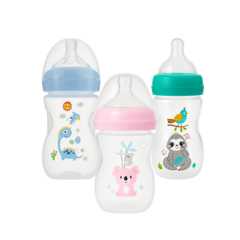 Este set de teteros de 8 onzas es perfecto para acompañar al bebé durante su crecimiento. Cada tetero cuenta con ilustraciones encantadoras que hacen de la hora de la toma un momento divertido. Su diseño anatómico se adapta cómodamente a las manos de los padres y del bebé, facilitando su uso diario.