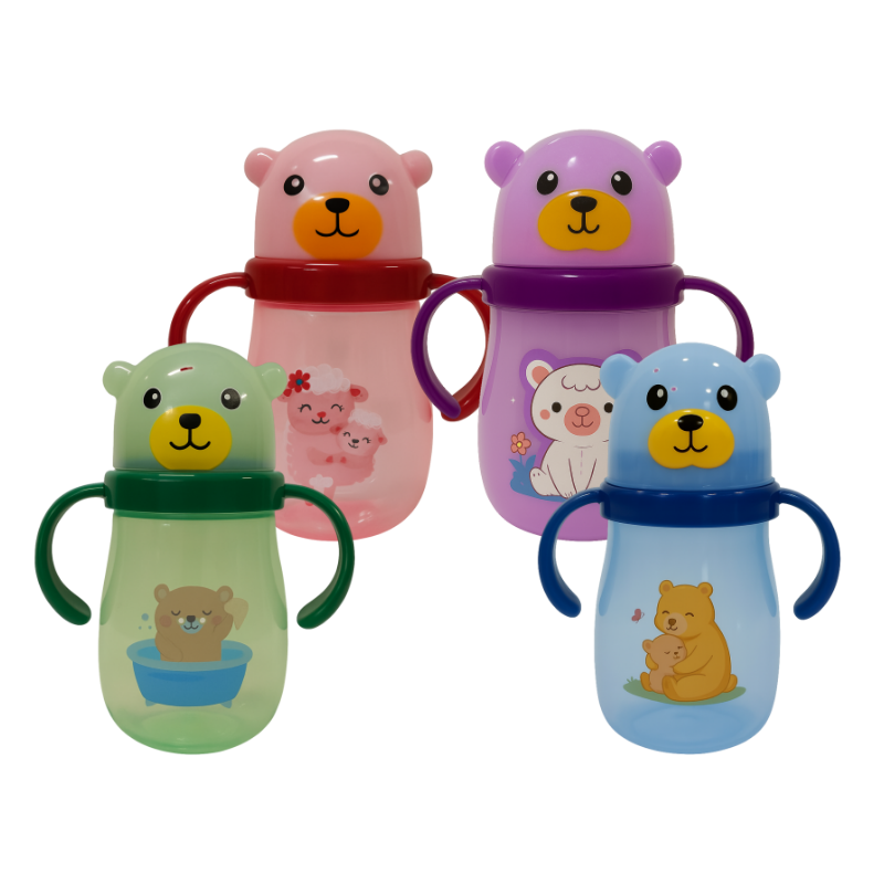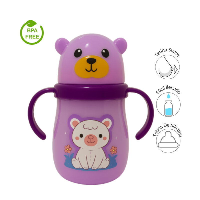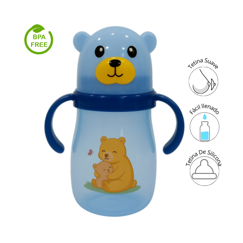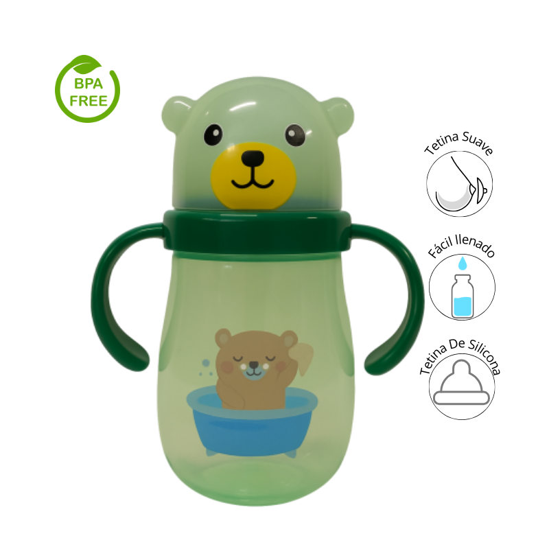 Este adorable vaso entrenador en forma de Osito es perfecto para acompañar a tu bebé en la transición del biberón al vaso. Con un diseño encantador de ositos abrazados, asas ergonómicas y tapa con orejitas, convierte cada sorbo en una experiencia divertida y segura.